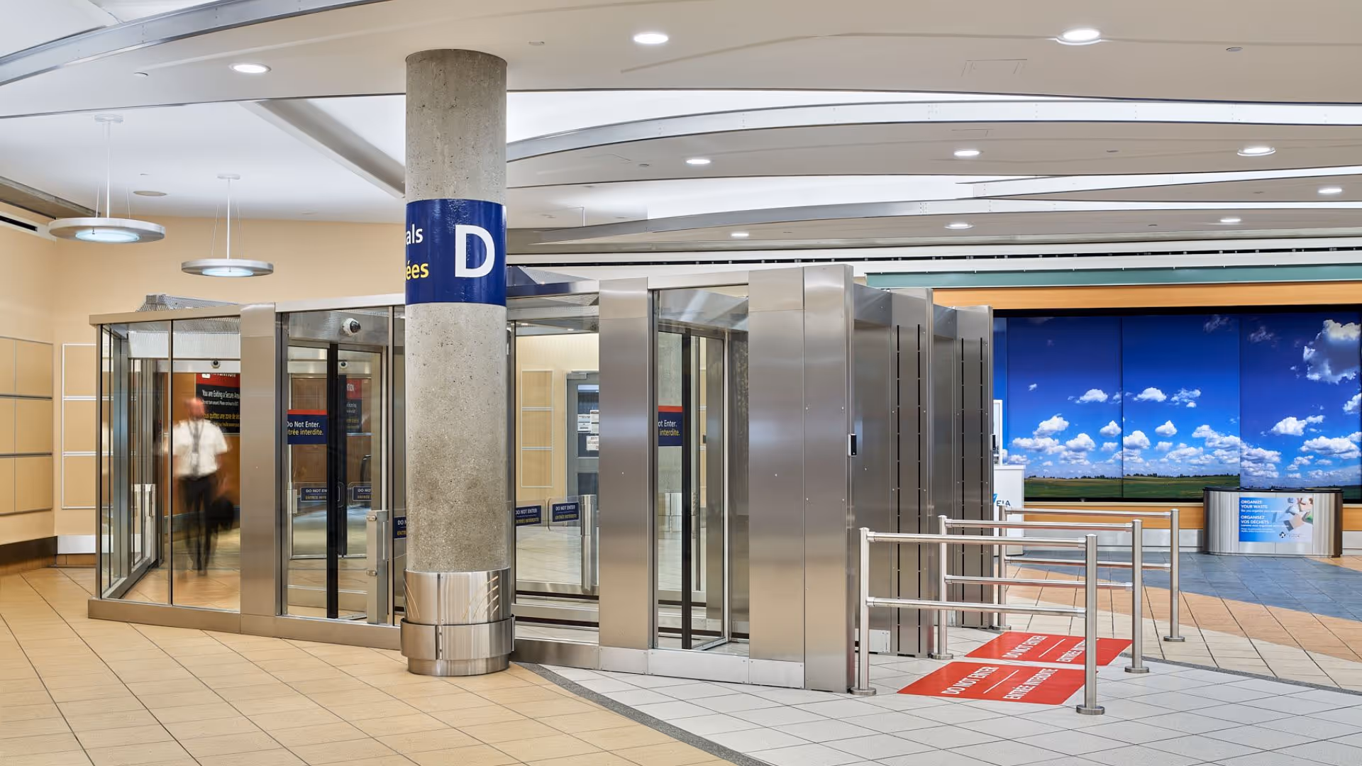 In 2022, Edmonton International airportswitched to a dormakabaunmannedExit lane Breach Control Solution. A 45 degree bend was added to thecorridorto accommodate for the existinglayout of the baggage claimarea, allowing passengersto exit the concourse directly into the baggageclaim area.